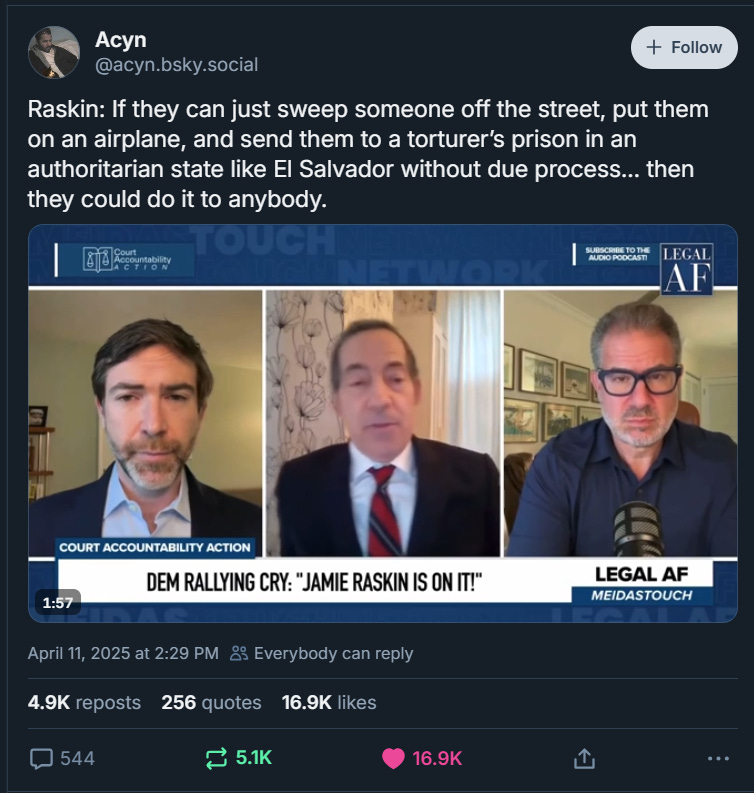 “If they can just sweep someone off the street, put them on an airplane, and send them to a torturer’s prison in an authoritarian state like El Salvador without due process… then they could do it to …